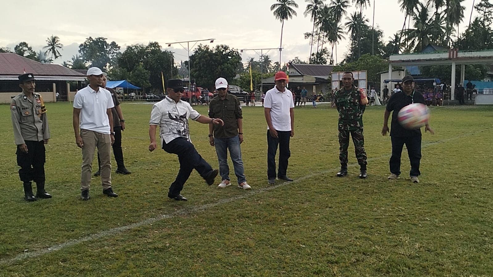 Wabup Kolut H. Jumarding,SE Saat Melakukan tendangan Bola pertama, di lapangan sepakbola Desa Tiwu,Minggu 05/10/2025.