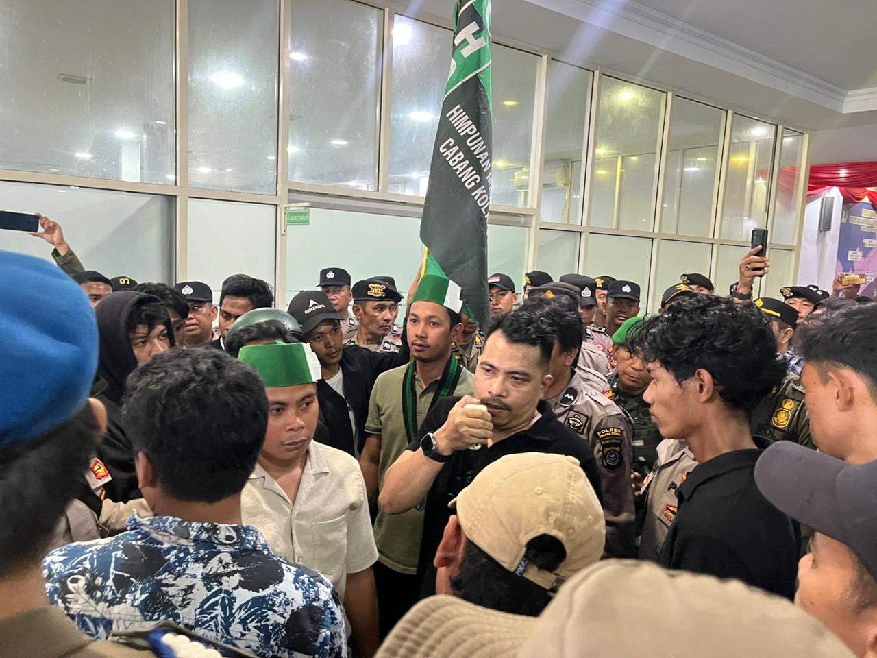 Setelah melakukan orasi di tugu kelapa,massa pun bergerak menuju kantor DPRD yang sudah dijaga ketat ratusan personil gabungan (TNI/Polri) dan SatPolPP, saling dorong pun di depan kantor DPRD tak terhindarkan setelah Kurnia Sandi melakukan orasi dan mengajak seluruh massa demonstran untuk masuk.