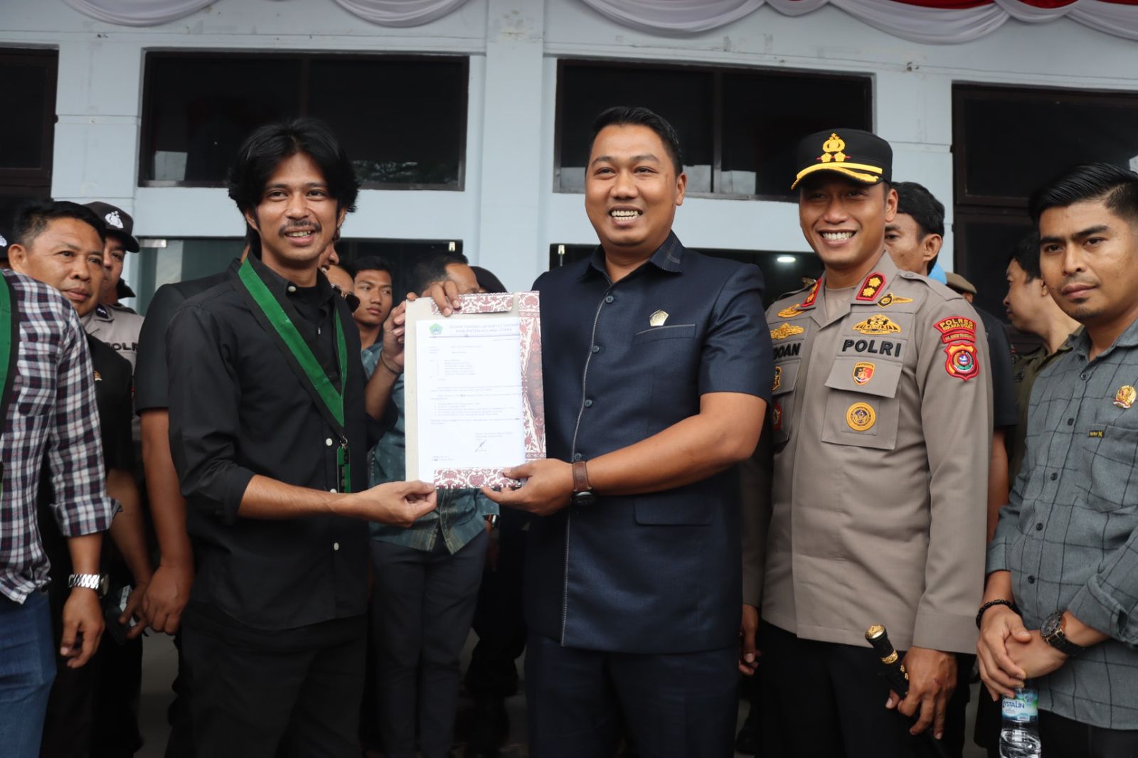 Sehingga massa pun di sambut dengan baik dan dilanjutkan diruang rapat DPRD untuk melakukan diskusi dan menyampaikan tuntutan para demonstran secara tertulis.